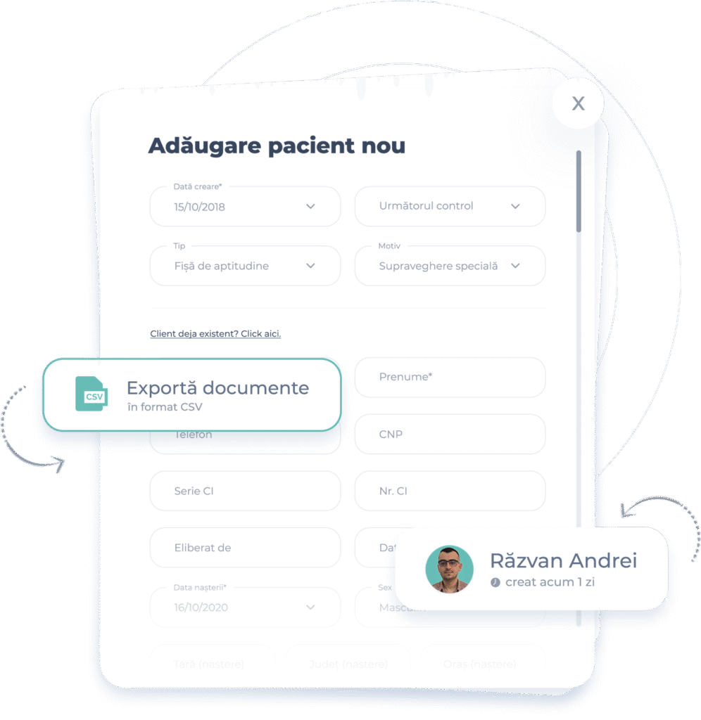 Creează și salvează fișe medicale, dosare și registre fără completare manuală, cu structură clară și acces rapid la date.